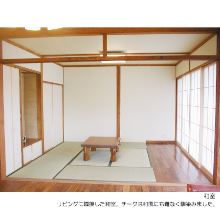 すべての造作材と建具を無垢のチーク材でつくりました。